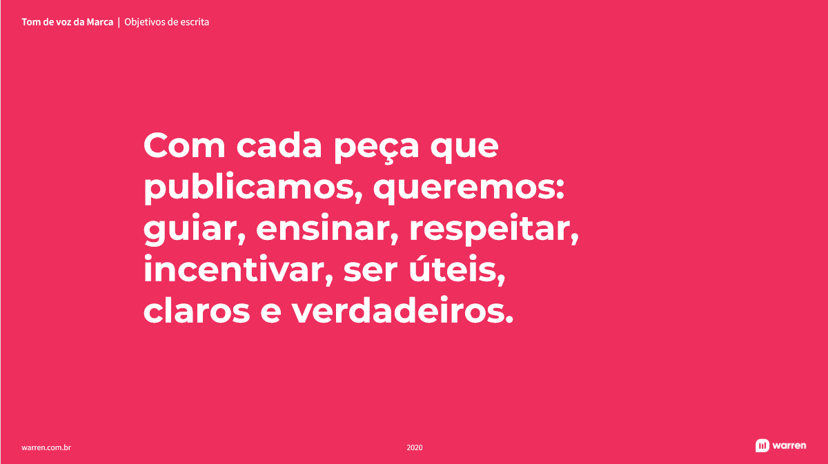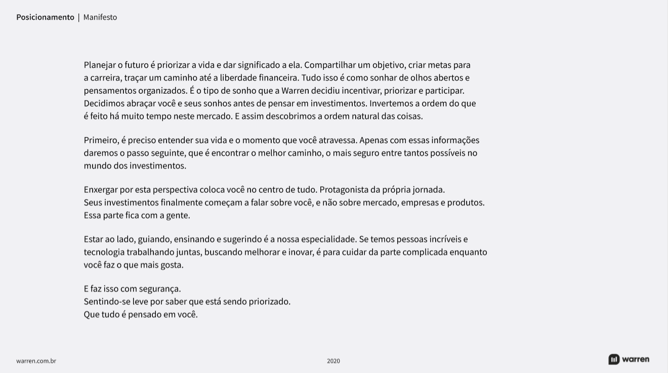 Esse foi o desafio que enfrentamos: orientar a marca Warren para acompanhar um novo momento organizacional. Sem perder sua essência.